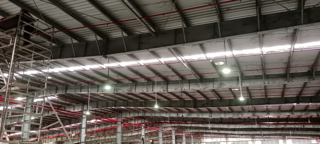 Agnim Engineerz was entrusted with the design and turnkey installation of an ESFR sprinkler system, following FM/UL standards and incorporating NFPA 13 design principles for palletized storage.
