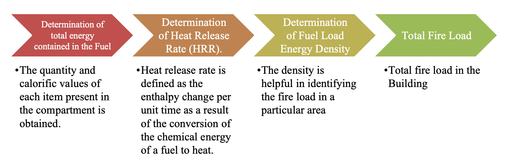 Calculating the fire load of any area (compartment) is a mathematical/scientific process of 04 steps as shown in the following procedure: